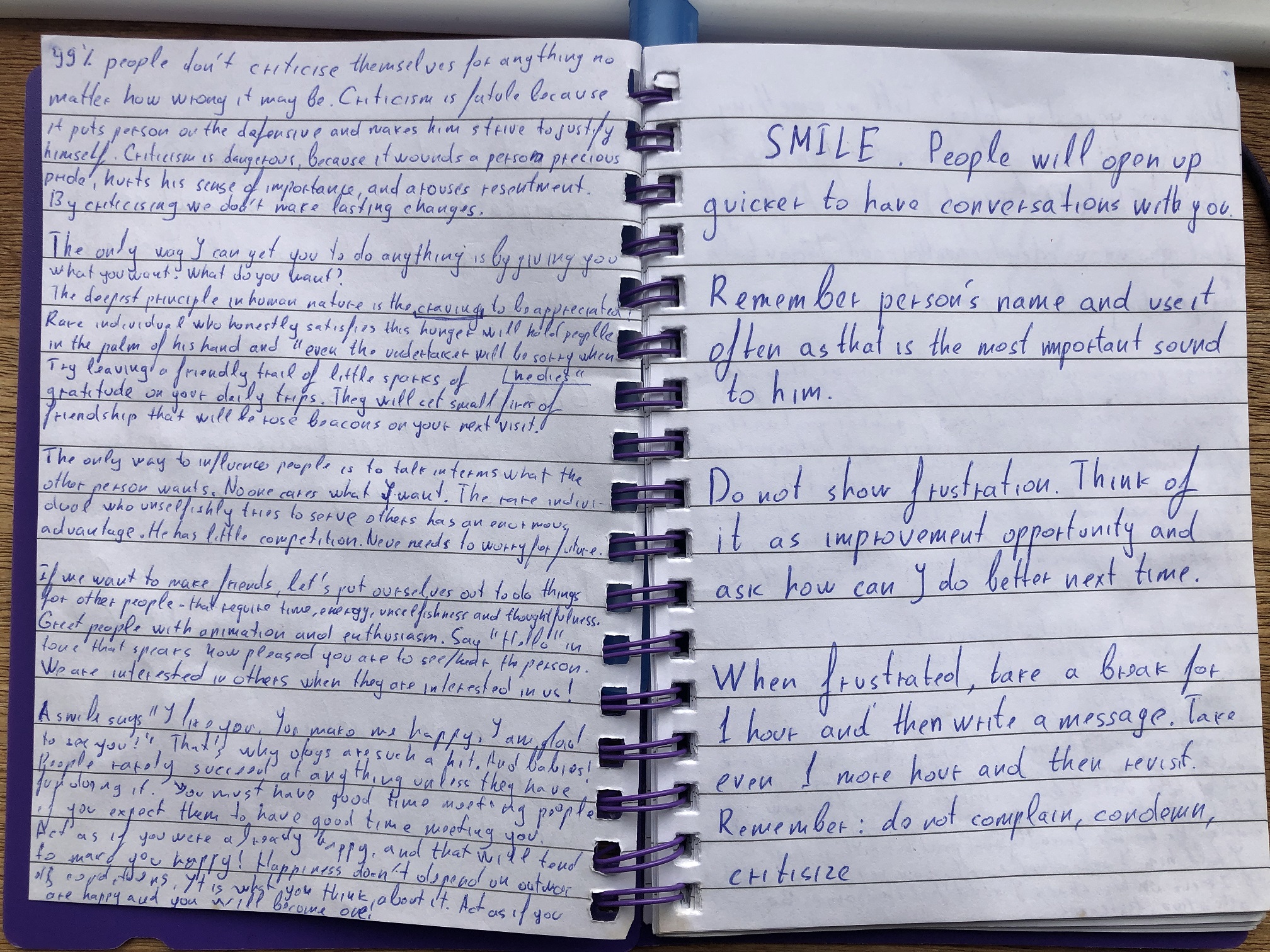 “Write down the things that speak to you and read them often” - the greatest advice my mentor gave me and I’m excited to share it with you. It’s a process for continuous self-improvement. Following it I’ve written my own personal Bible which enabled numerous adjustments of my behavior.